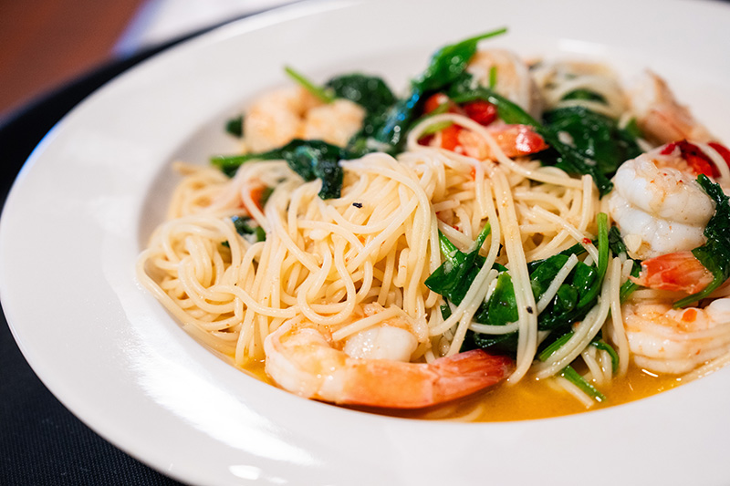 Jumbo shrimp, scallops and clams, sautéed in a tomato sauce, served over spaghetti – your choice of hot, medium or mild.